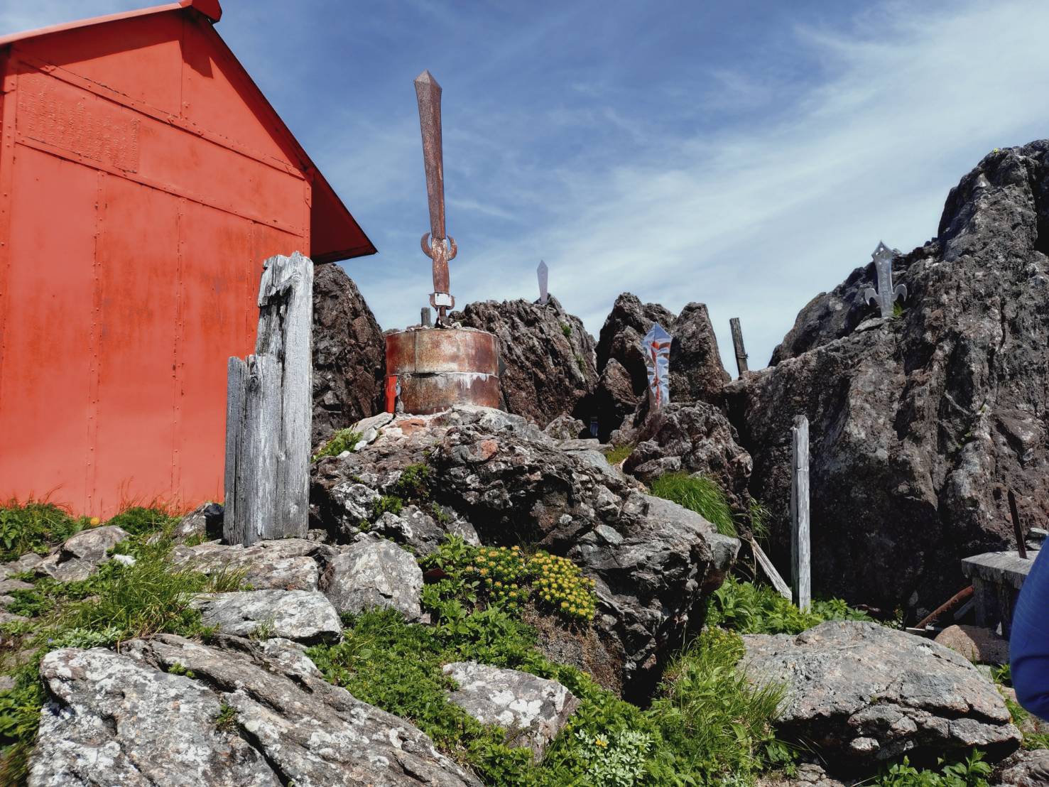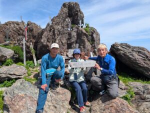 早池峰山は古くから山岳信仰の霊場であることからか、多くの剣が山頂に奉納されていた。麓の岳には宿坊があり、修験道の山として有名である。以前の会山行で東北の山として同じく岩手県の姫神山に登ったが、早池峰山とは因縁があり、雄神の岩手山は姫神山と夫婦になったが、さほど美しくなかったので早池峰山を側室にしたとの事。