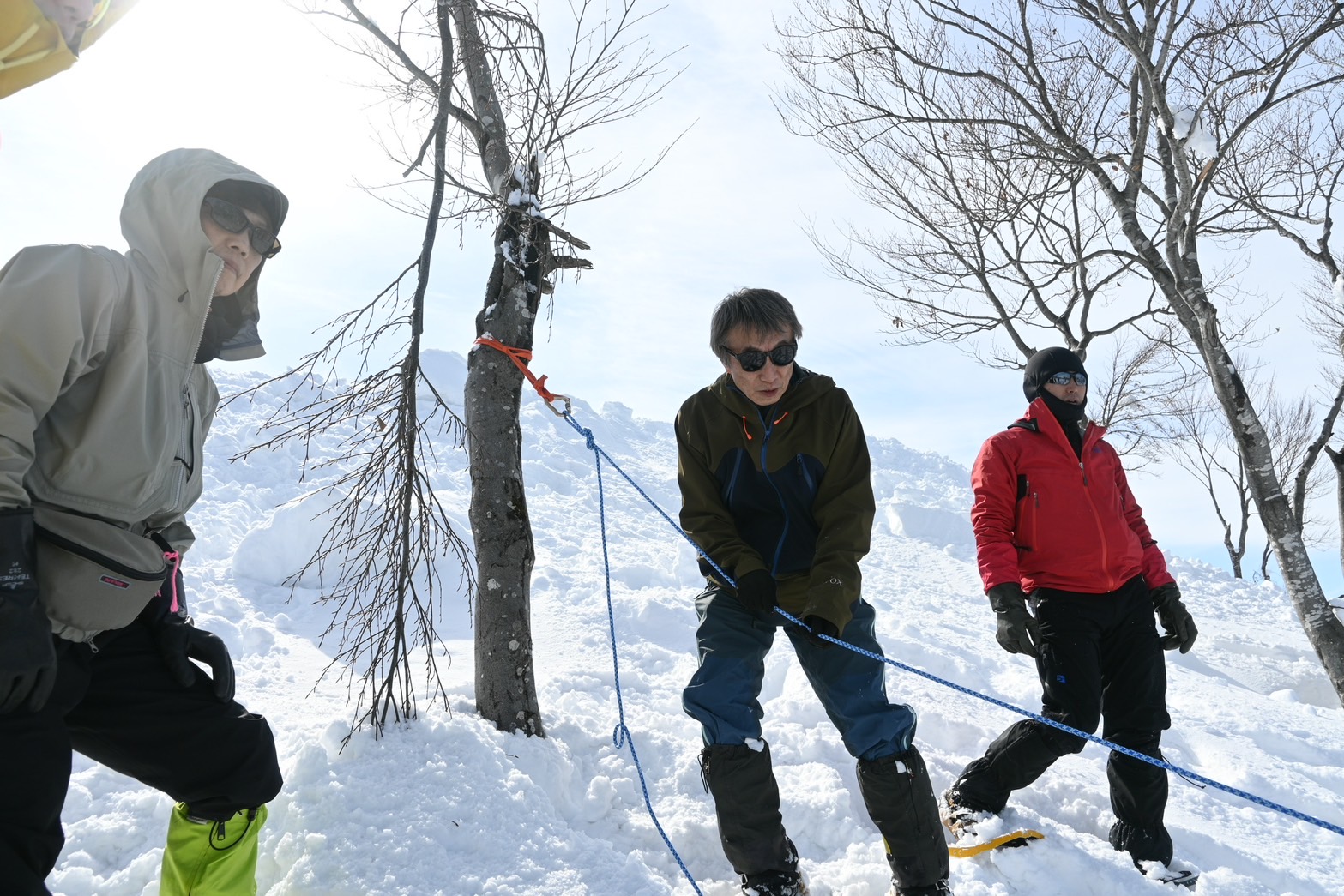 講習二つ目のロープを使った引き上げ訓練では木村(昌)さんのマジックのようなロープさばきに目を見張り…