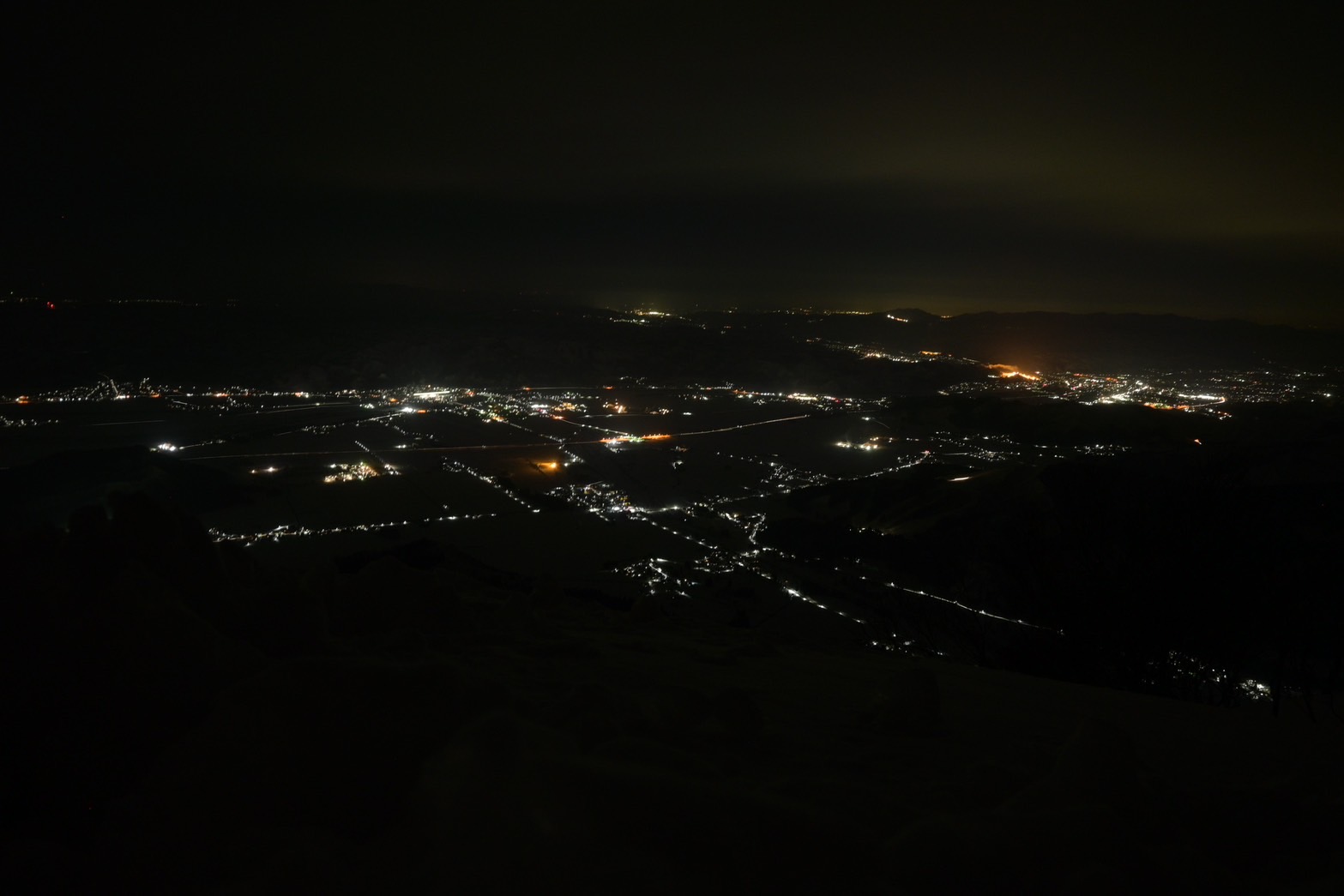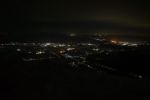 テントの外に出ると夜景が一望でき、小出や長岡の街の灯りがキラキラと輝いていてとても綺麗だった。