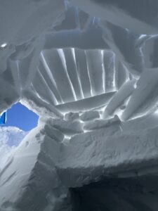 2日目の午前中は、リーダーの指導のもと2チームに分かれてイグルー作りを行った。丁寧に雪のブロックを切り出し、積み上げていくことが大切だそうだ。